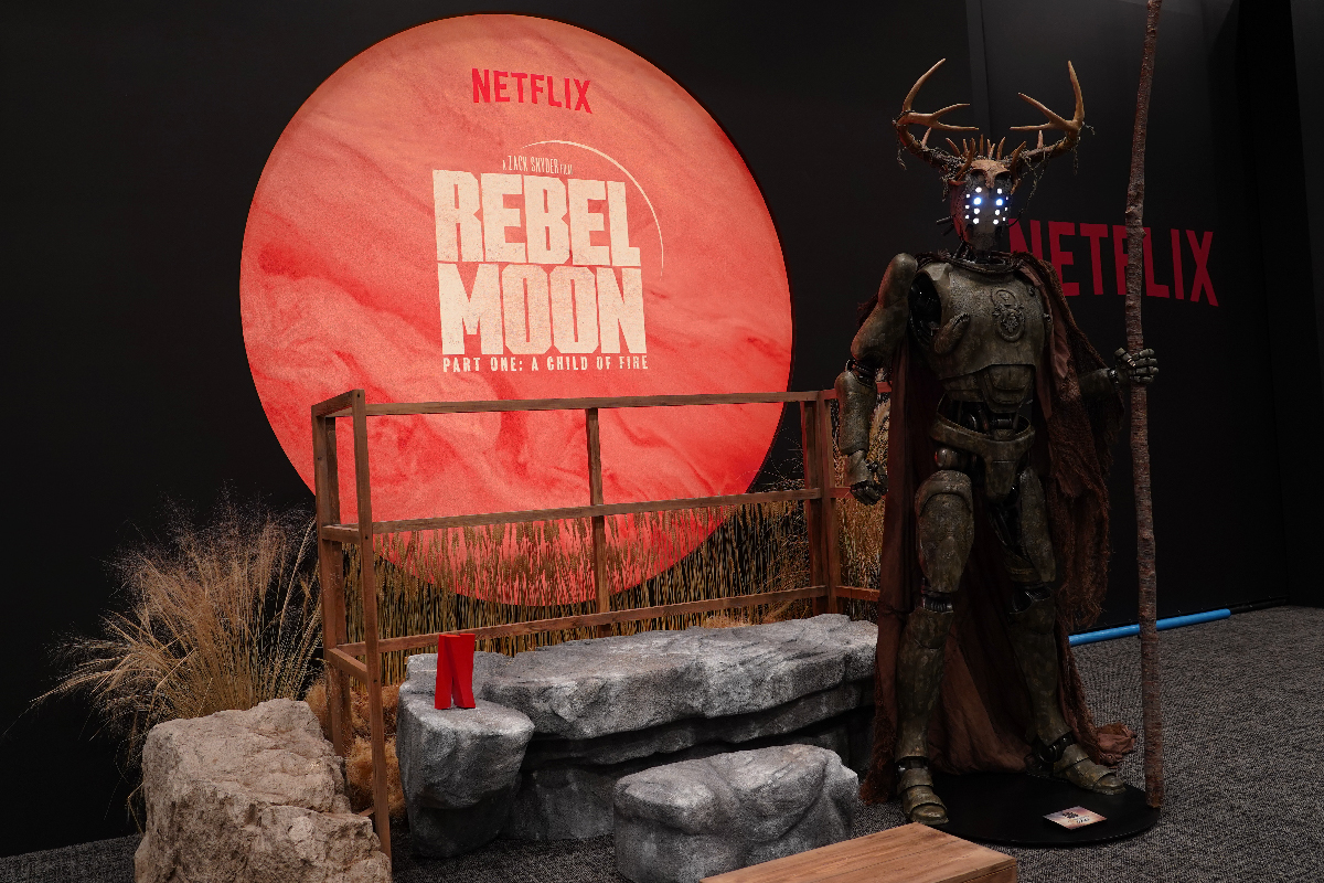 Fans were able to experience the world of Rebel Moon in person through “tactile and immersive touch points,” as well as costumes, props from the set and even a life-size spaceship, led by Zak Snyder himself!